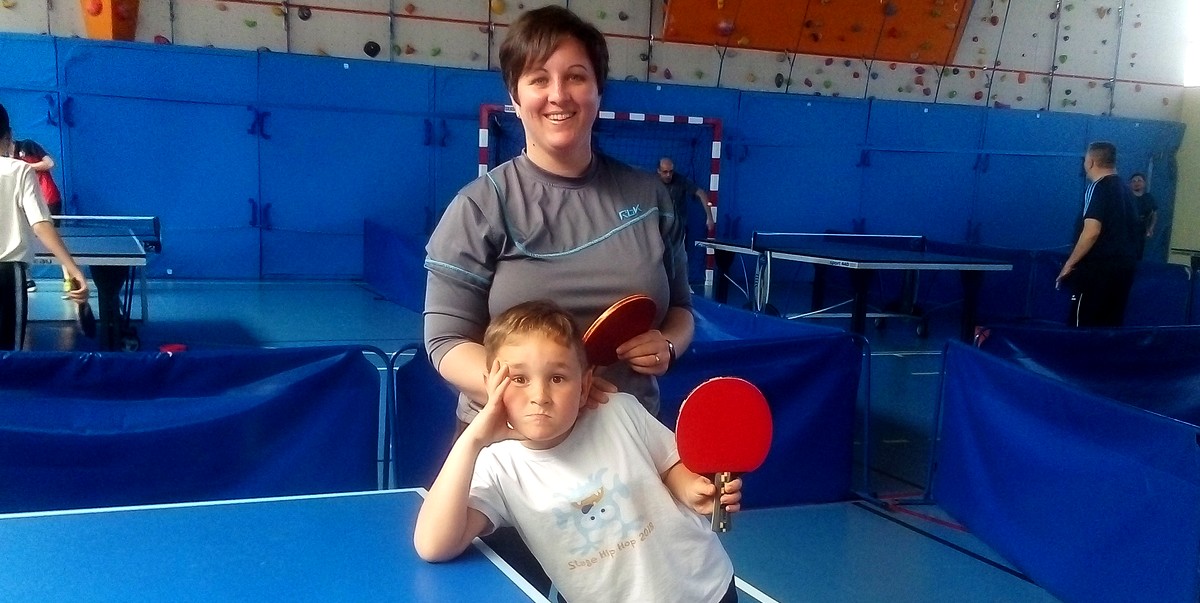 Nathan, son papa, sa maman et encore huit autres pongistes de tout âge et niveau ainsi dire presque tout le club de TT Vallonnais étaient présents ce vendredi de vacances de Pâques pour participer à une journée de découverte du tennis de table sous ses formes techniques.