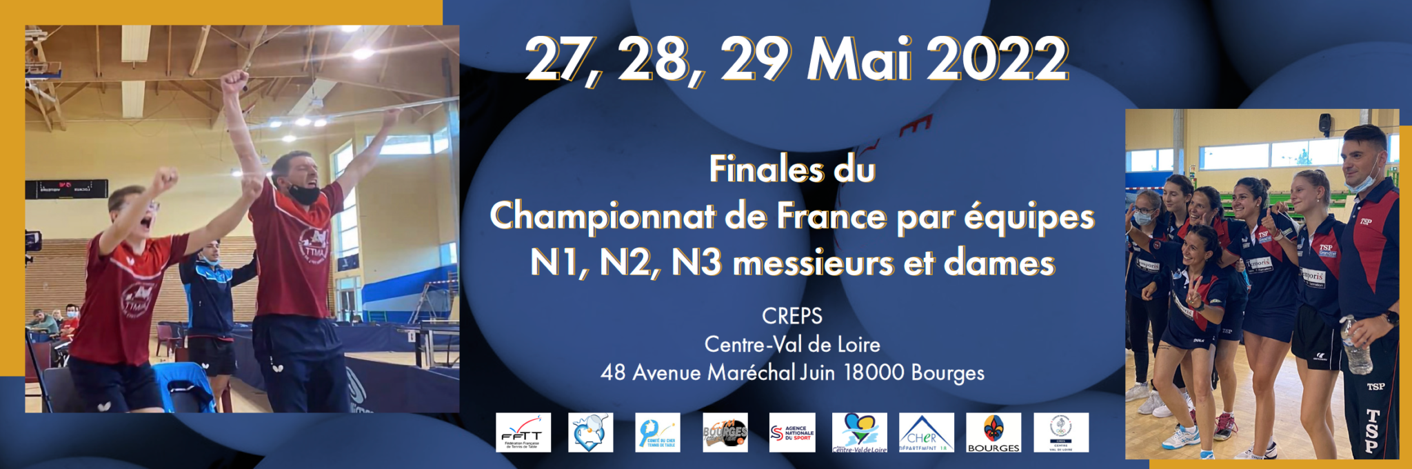 Les vainqueurs des poules de N1 N2 N3 filles et garçons se retrouvent à Bourges à partir de vendredi 27 mai à 16h au CREPS de Bourges pour se voir décerner le titre de champion de France par équipes.
