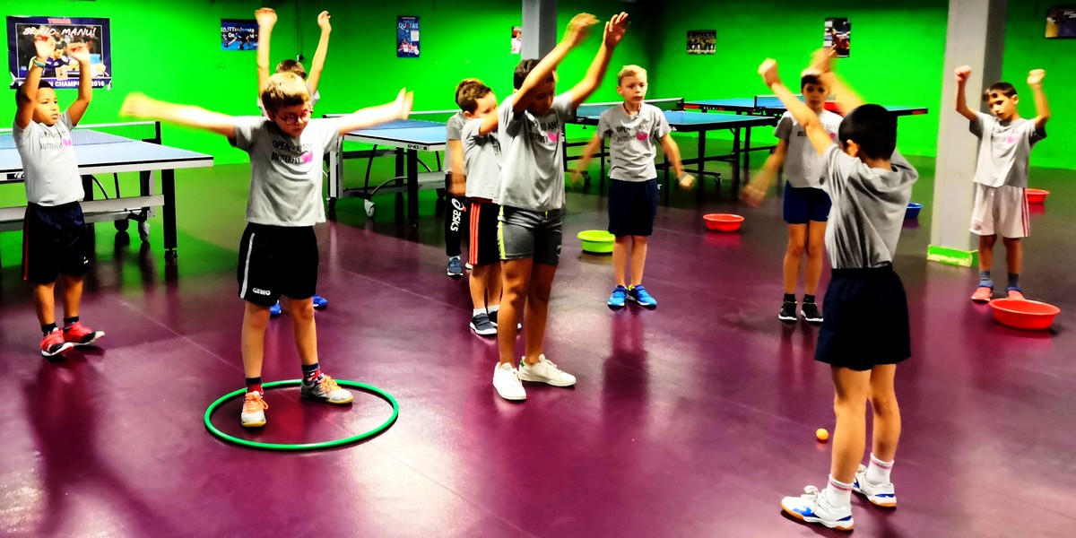 Après un parcours d’agilité et de motricité chronométré, les jeunes pongistes se retrouvent au panier de balles et terminent la séance par une montée de table générale.