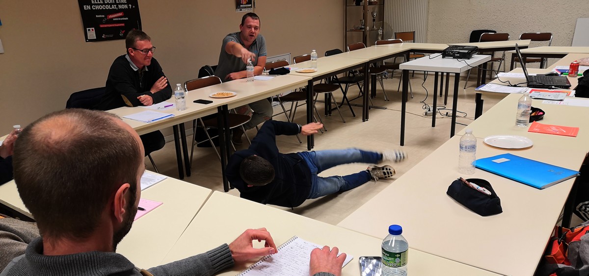 Les participants cette année sont aussi variés que possible. Se forment le bureau complet de Saint-Amand Ping, Vincent Rothenburger, Sylvie Damez et Sylvain Huet, désireux de refonder leur association. Nous avons également Frédéric Baron,du TT Aubigny et Adrien Honoré du CP Bigny-Vallenay, tous les deux souhaitent apporter de l’aide dans les séances dirigées. Et enfin deux jeunes, Jules Barriol du CJM Bourges et Evan Styranec du TT Aubigny, des juniors qui désirent connaître l’envers du décor et pourquoi pas poursuivre le parcours fédéral de formation. Une partie de celle-ci se déroule à distance par le dispositif de la FOAD (formation ouverte et à distance)) et permet aux stagiaires de trouver des réponses à leurs attentes.