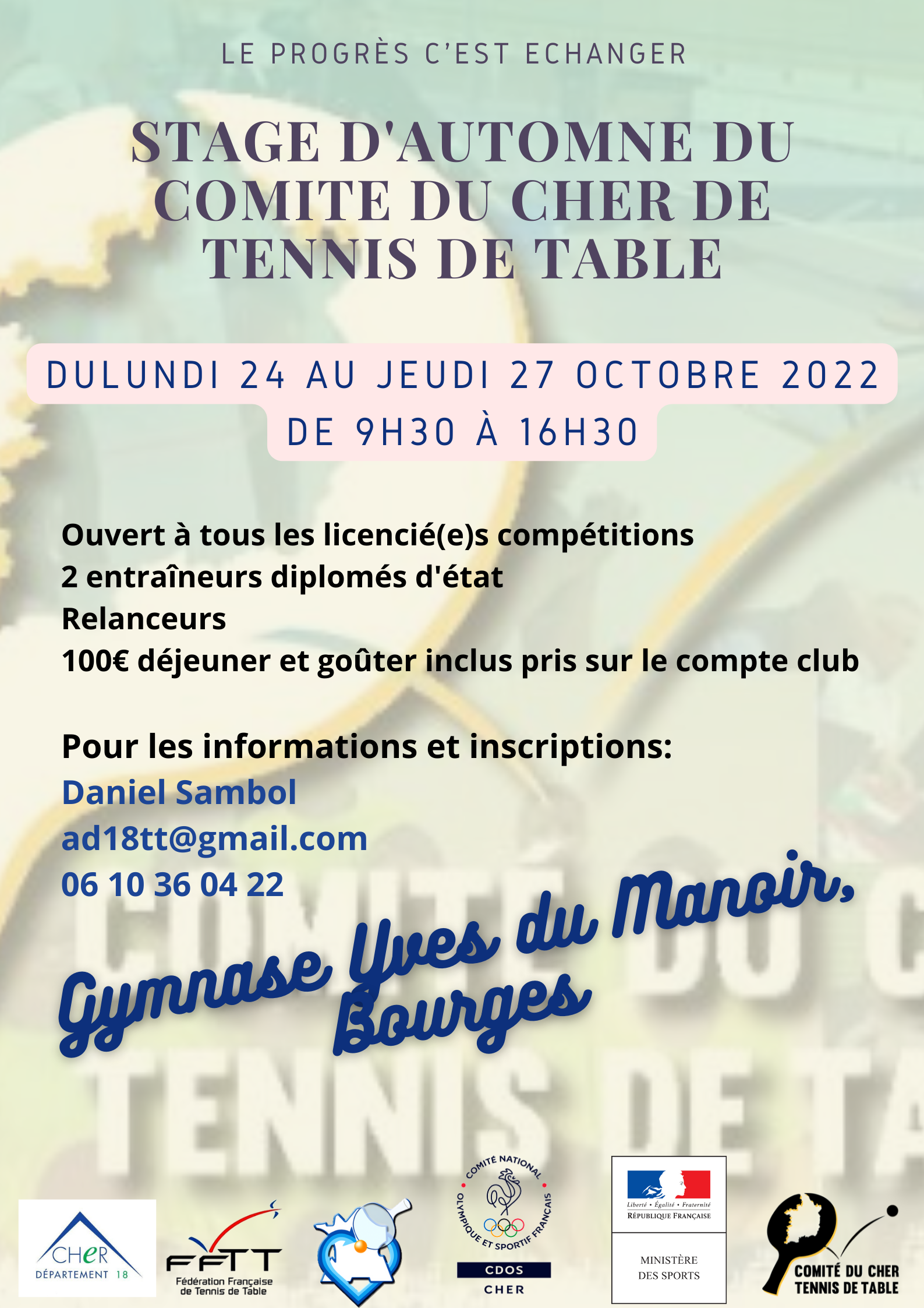 A Yves du Manoir à Bourges du lundi 24 au jeudi 27 octobre 2022, de 9h30 à 16h30, ce stage de perfectionnement ouvert à toutes et tous sera conduit par Jonathan Roger, éducateur à Mehun sur Yèvre et Daniel Sambol, agent de développement. Des relanceurs vous aideront à votre perfectionnement