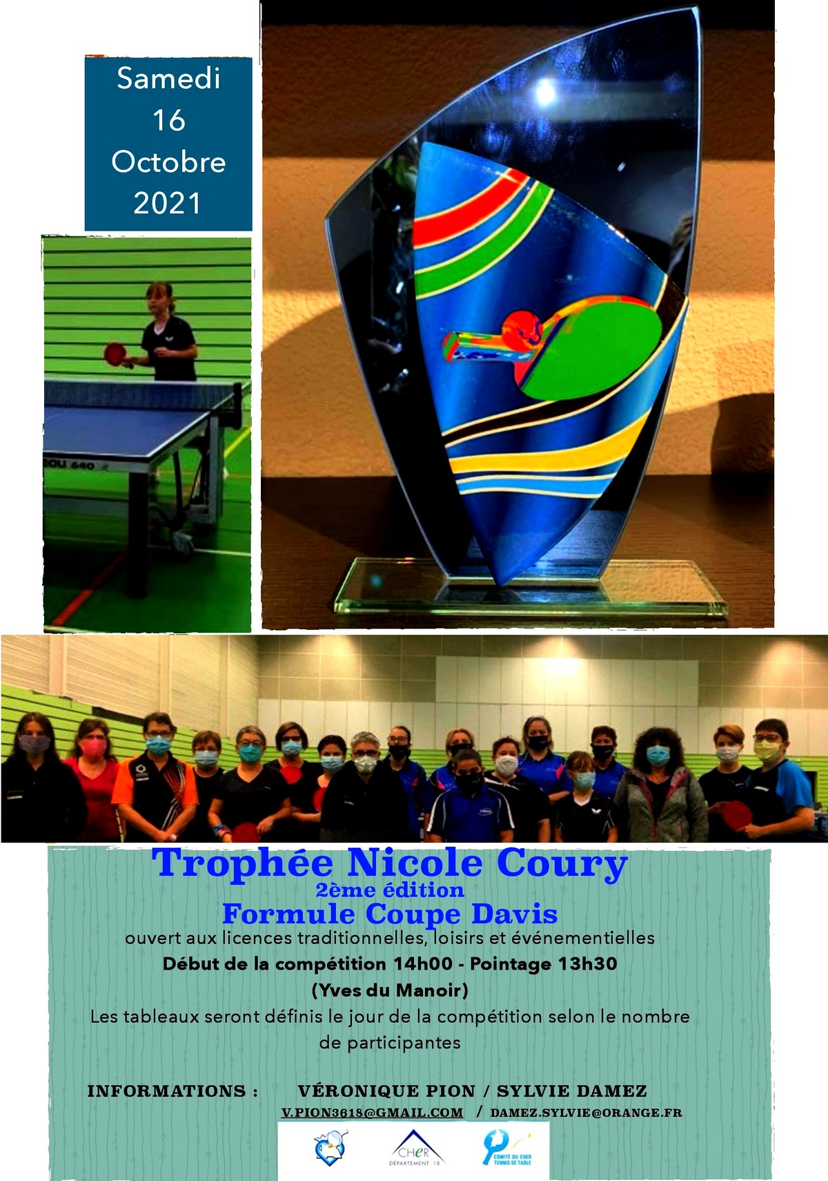 Ce trophée est une compétition féminine destinée aux joueuses de tous les âges, titulaires d’une licence promotionnelle, traditionnelle ou événementielles et se déroule sur un tour. Il a pris le nom de Nicole Coury, ancienne présidente du comité du Cher de tennis de table (1992-2000) et membre de la FFTT (Voir article).