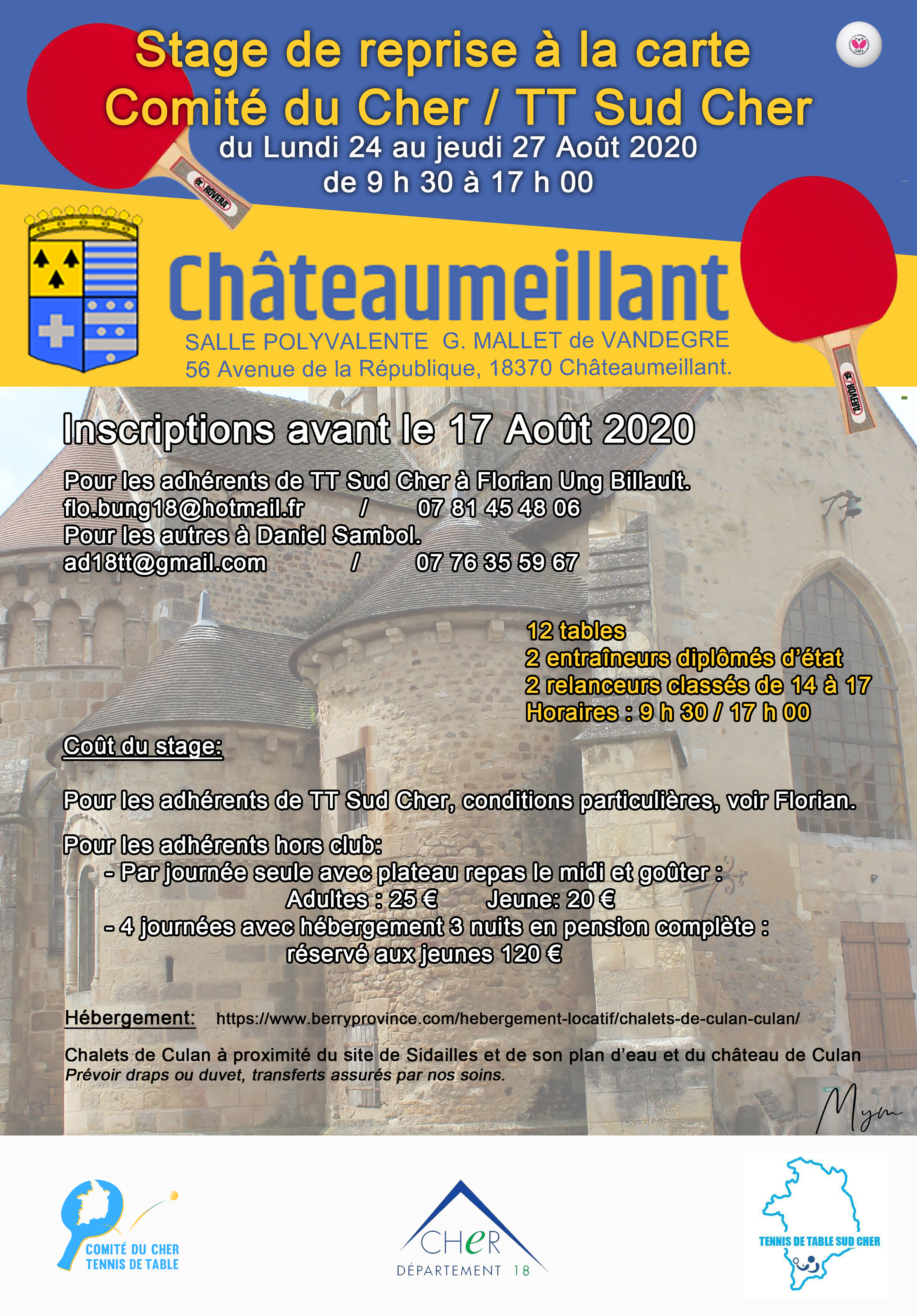 Pour les adhérents de TT Sud Cher à Florian Ung Billault : flo.bung18@hotmail.fr – Tél :07 81 45 48 06